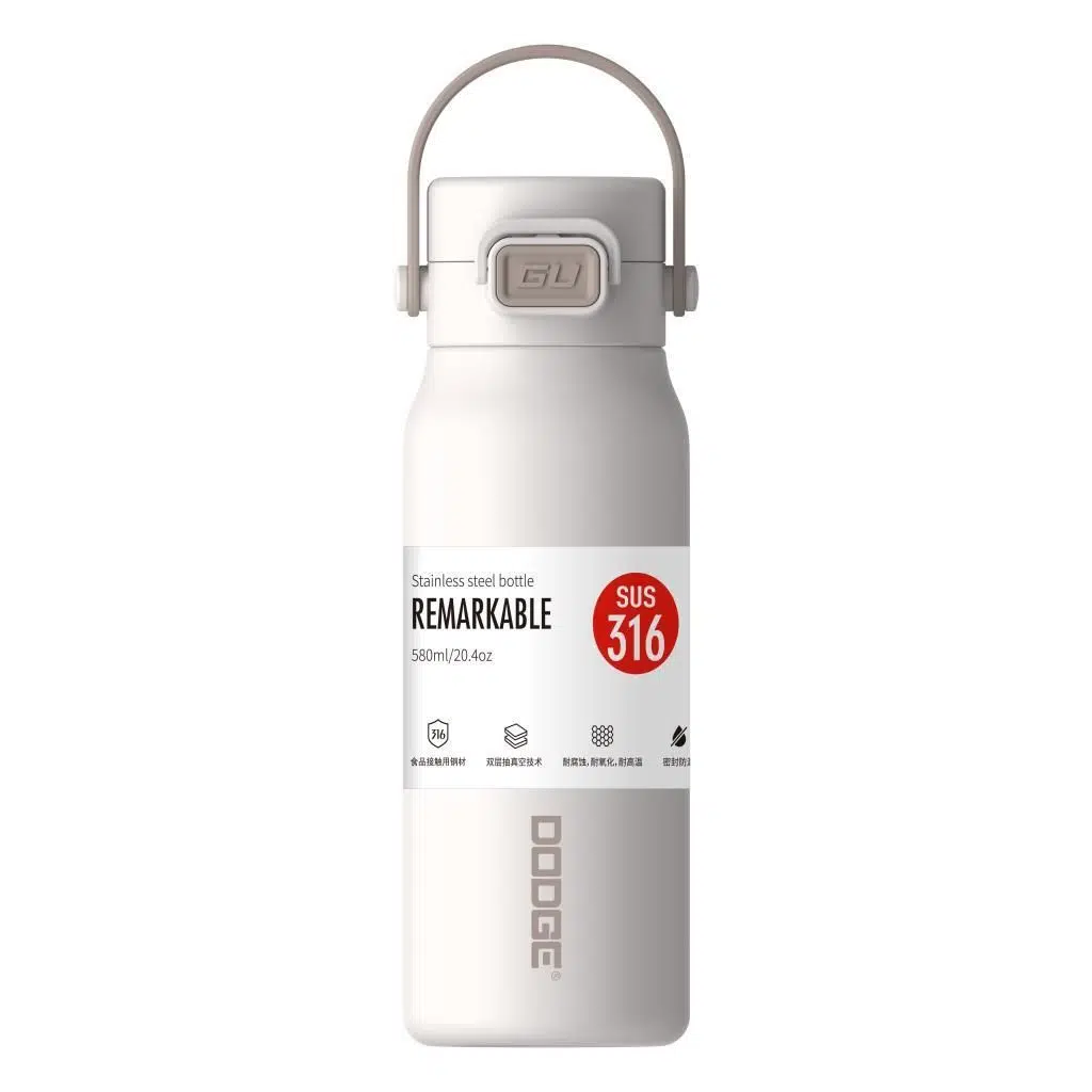 Dodge Çelik Termos Matara, Vakumlu, Yalıtımlı, Paslanmaz Çelik 316, Kilitli Sızdırmaz Kapak 580Ml Beyaz