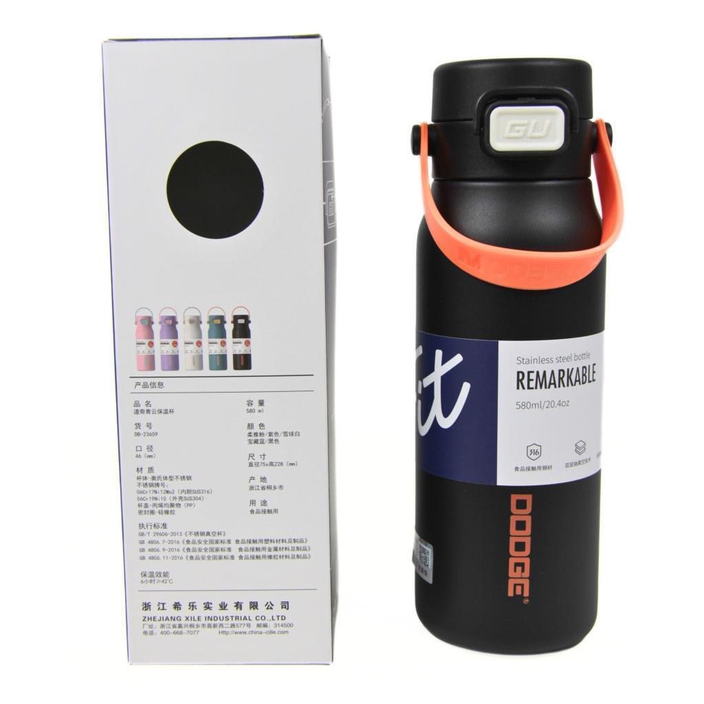 Dodge Çelik Termos Matara, Vakumlu, Yalıtımlı, Paslanmaz Çelik 316, Kilitli Sızdırmaz Kapak 580Ml Siyah