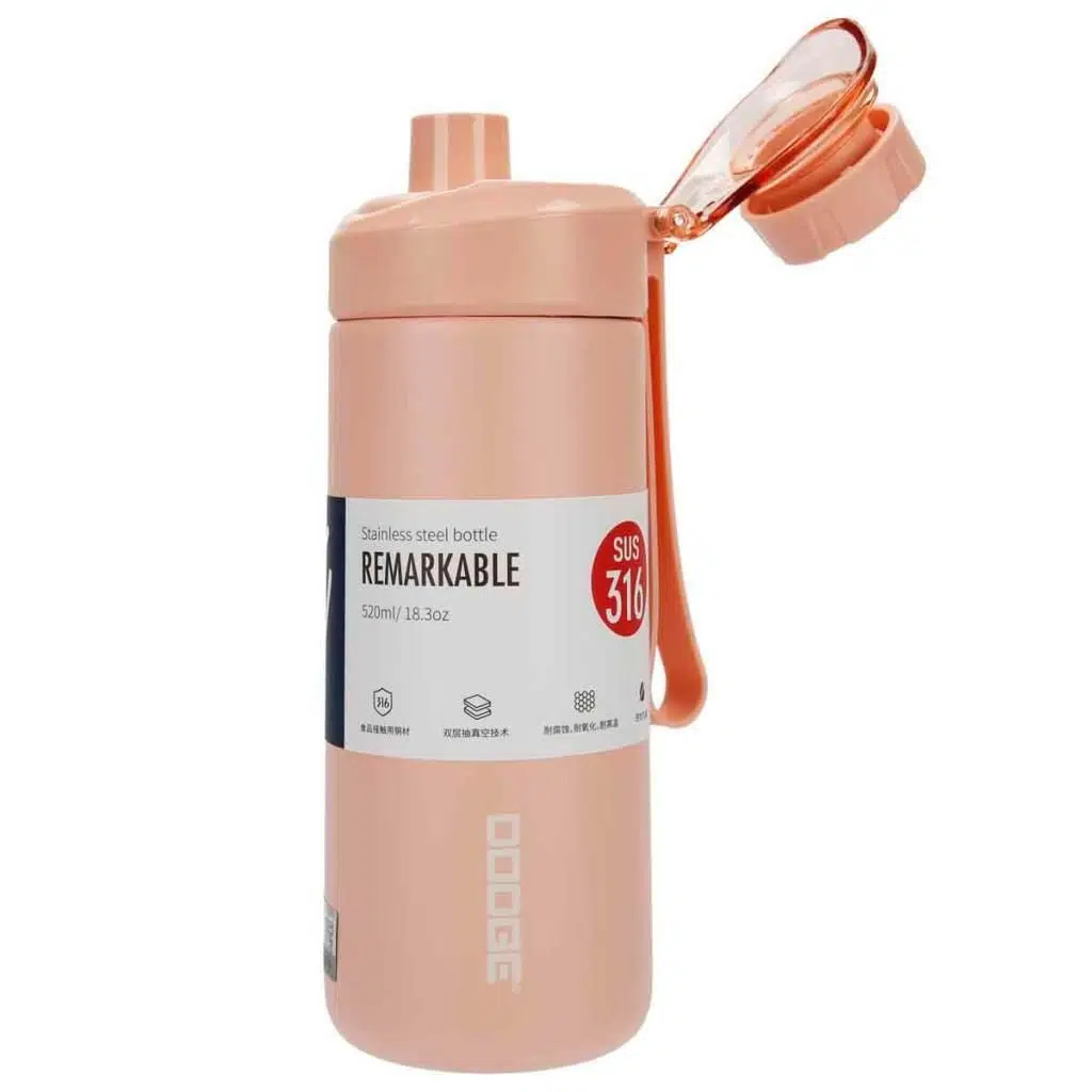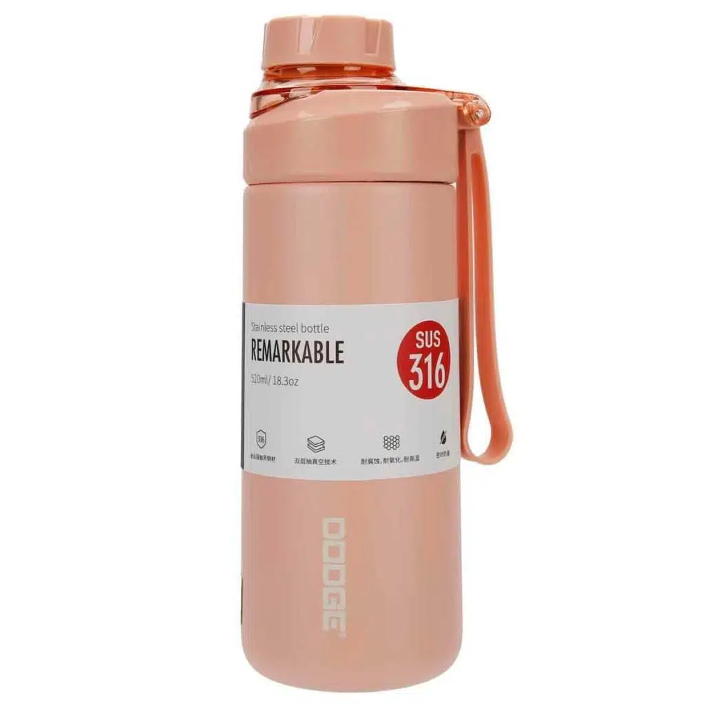 Dodge Fit Çelik Termos Matara, Vakumlu, Yalıtımlı, Paslanmaz Çelik 316, Kilitli Sızdırmaz Kapak 520Ml Somon