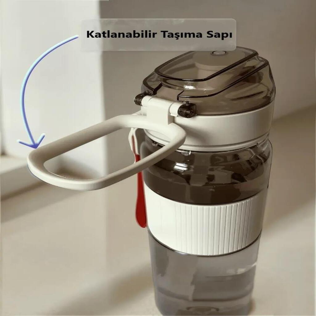 Dodge Su Matarası Tritan Silikon Kemerli, Şeffaf Kilitli Kapaklı, Sızdırmaz, Dayanıklı, Hafif, BPA İçermeyen Su Şişesi Beyaz 850Ml
