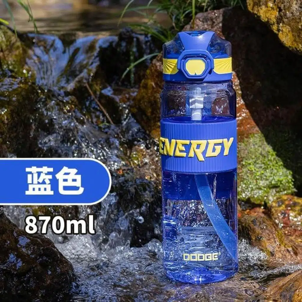 Dodge Su Matarası Tritan Silikon Kemerli, Şeffaf Kilitli Kapaklı, Sızdırmaz, Dayanıklı, Hafif, BPA İçermeyen Su Şişesi Mavi 870Ml