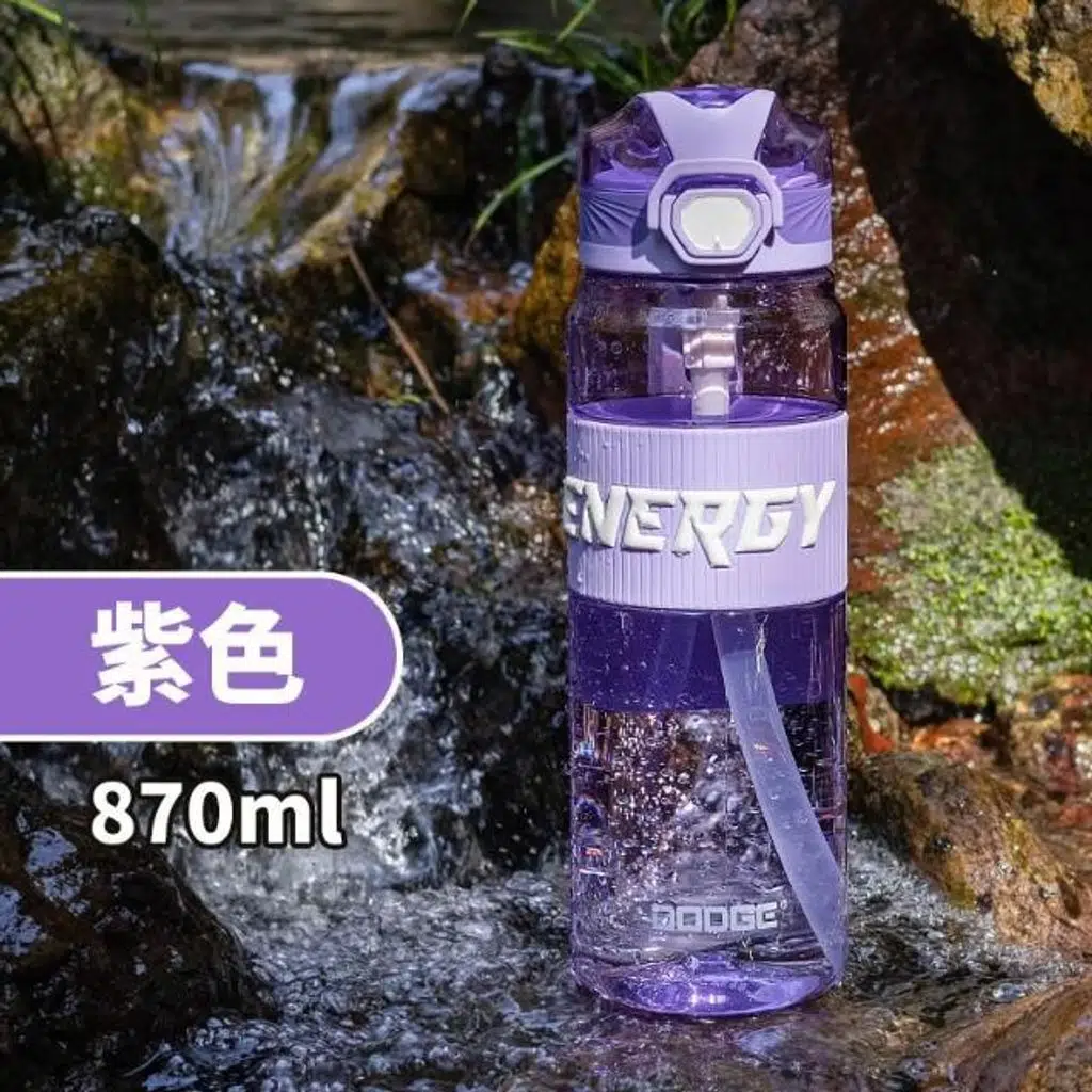 Dodge Su Matarası Tritan Silikon Kemerli, Şeffaf Kilitli Kapaklı, Sızdırmaz, Dayanıklı, Hafif, BPA İçermeyen Su Şişesi Mor 870Ml
