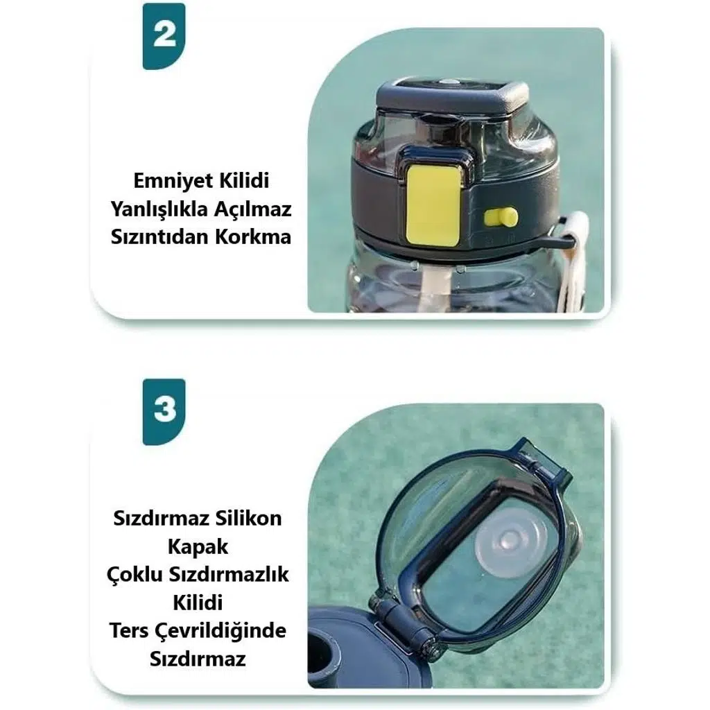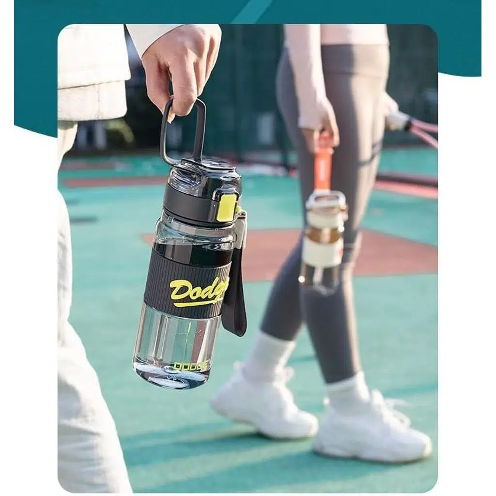 Dodge Su Matarası Tritan Silikon Kemerli, Şeffaf Kilitli Kapaklı, Sızdırmaz, Dayanıklı, Hafif, BPA İçermeyen Su Şişesi Siyah 670Ml