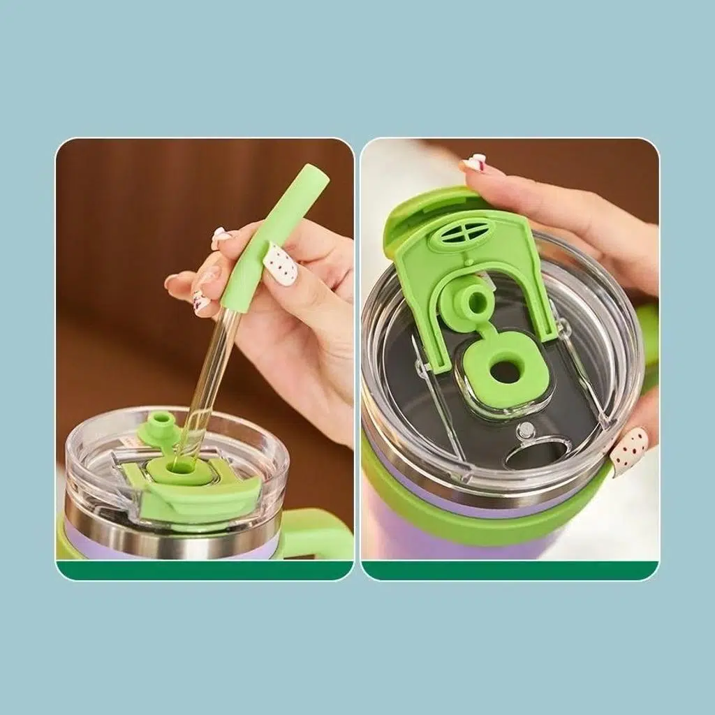 Tek elle açılabilen sızdırmaz kapak sayesinde kolaylıkla çantada taşınabilir. Şık kulbu taşıma kolaylığı sağlar. Pipetli veya pipetsiz kullanabilirsiniz.
