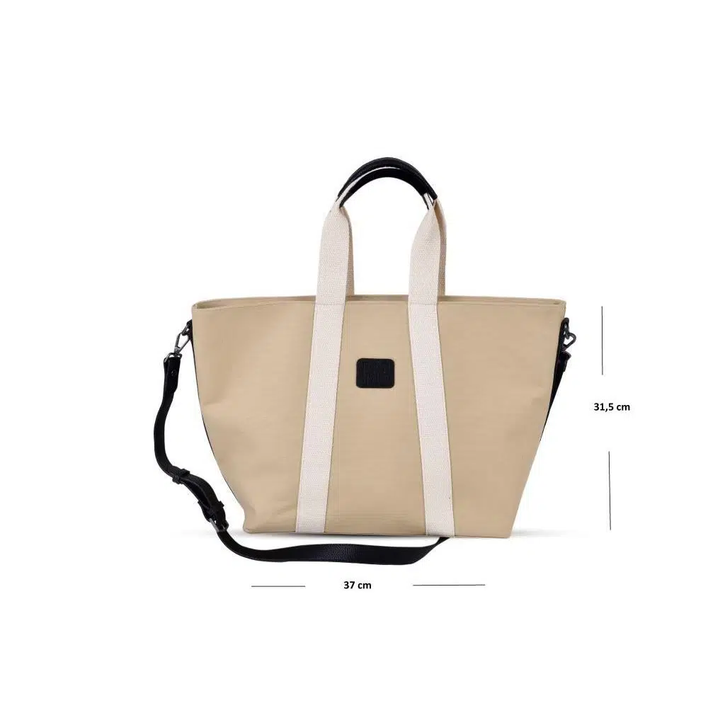 Kanvas dokusu çantaya doğal bir hava katarken krem rengi bant ve askı detayları ile asil çizgilere sahip çantanın kalite ve tasarımını öne çıkarmaktadır.