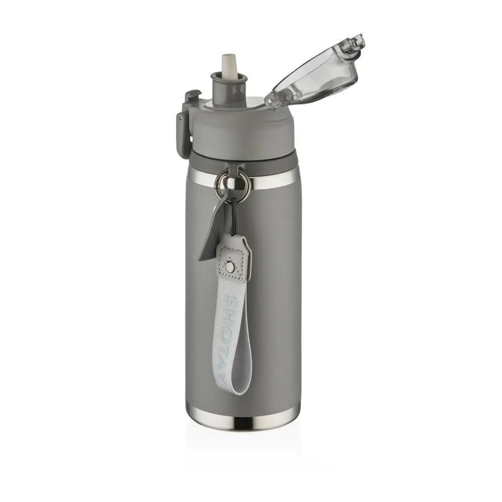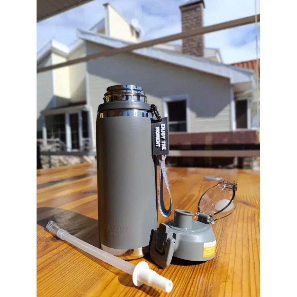 Shotay Camping Çelik Termos Matara Sağlıklı ve Pratik İçim, Yalıtımlı, Kilitli Kapak, Pipetli veya Emzikli Kullanım, 304 Paslanmaz Çelik 750Ml Koyu Gri