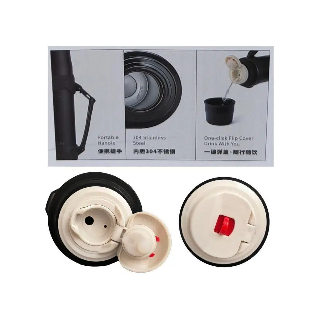Özel kapağı sızdırma yapmaz, iç kapağını bastırarak sıvı akışını sağlayabilirsiniz. Kapağını bardak olarak kullanabilirsiniz. Katlanabilir kulbu hem şık hem de kullanışlıdır, sabit kulplar gibi yer kaplamaz, dilediğinizde açıp kullanabilirsiniz.