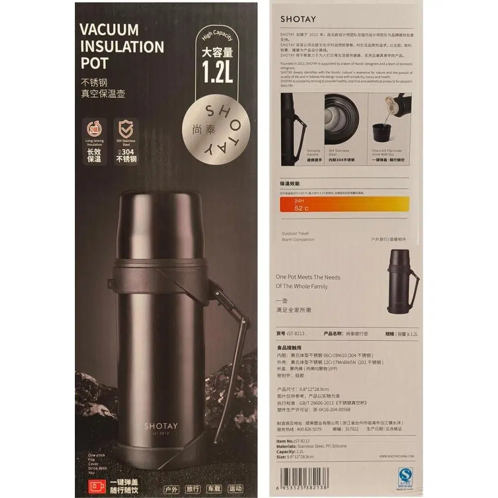 1,2 Litrelik Shotay sağlam ve şık termosunuz kamp, seyahat ve ofiste her an yanınızda bulundurmak isteyeceğiniz bir tasarıma sahiptir.