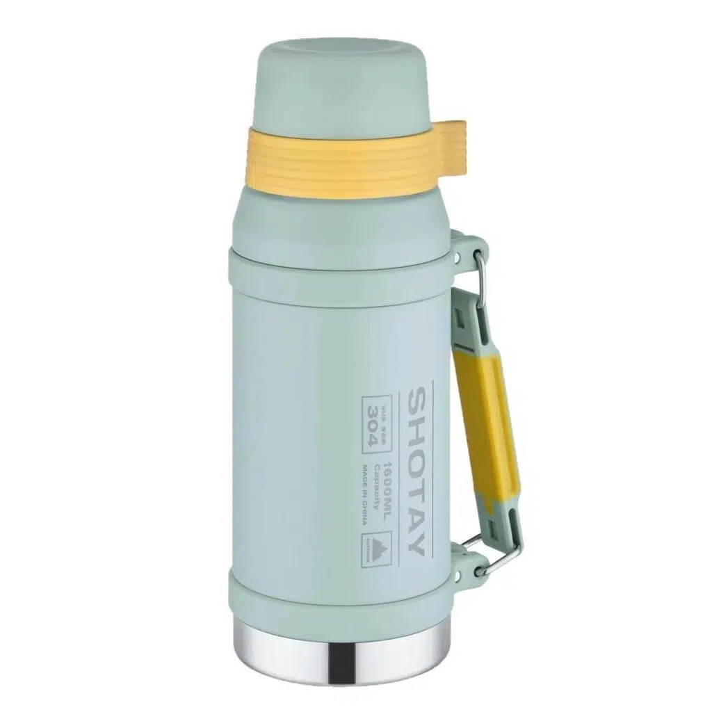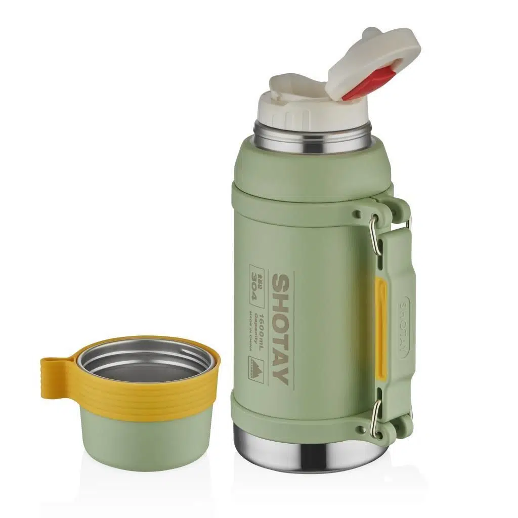Shotay Camper Large Paslanmaz Çelik Vakumlu Termos 1600Ml Açık Yeşil