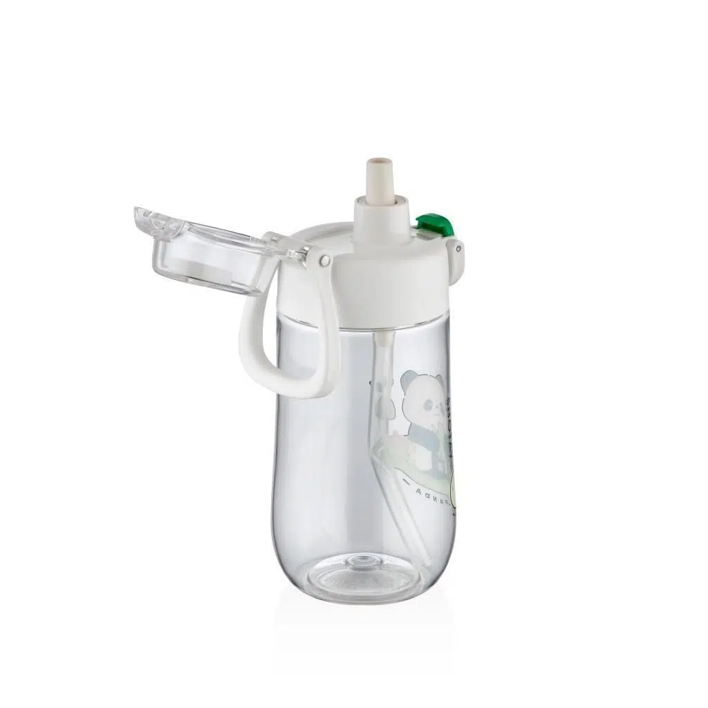 Shotay Çocuk Su Matarası Dayanıklı, Sızdırmaz, Pipetli veya Emzikli Kullanım, Tritan, Panda Figürlü, Unisex 500Ml Beyaz