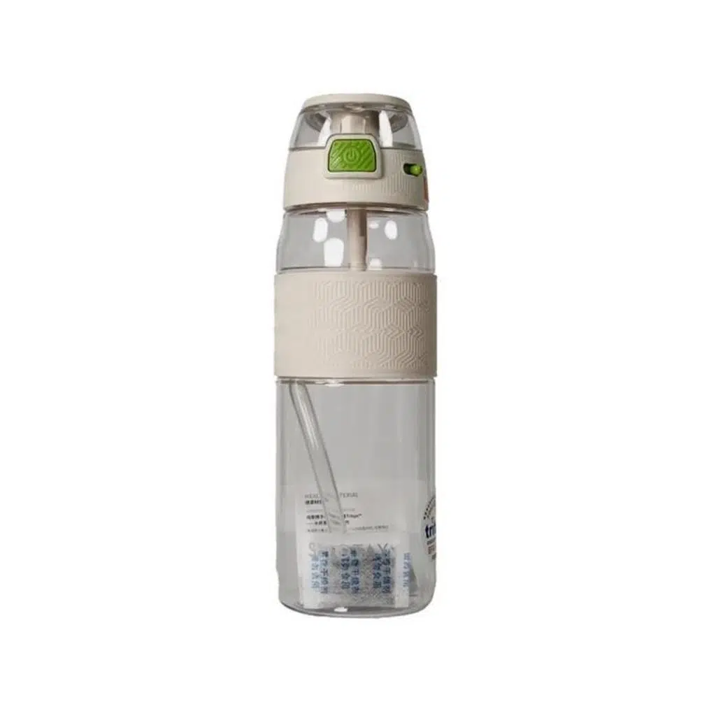 Shotay Çocuk Su Matarası Şeffaf Kapaklı, Silikon Şeritli, Sızdırmaz, Dayanıklı, Pipetli, BPA İçermeyen, Tritan Unisex Krem 800Ml
