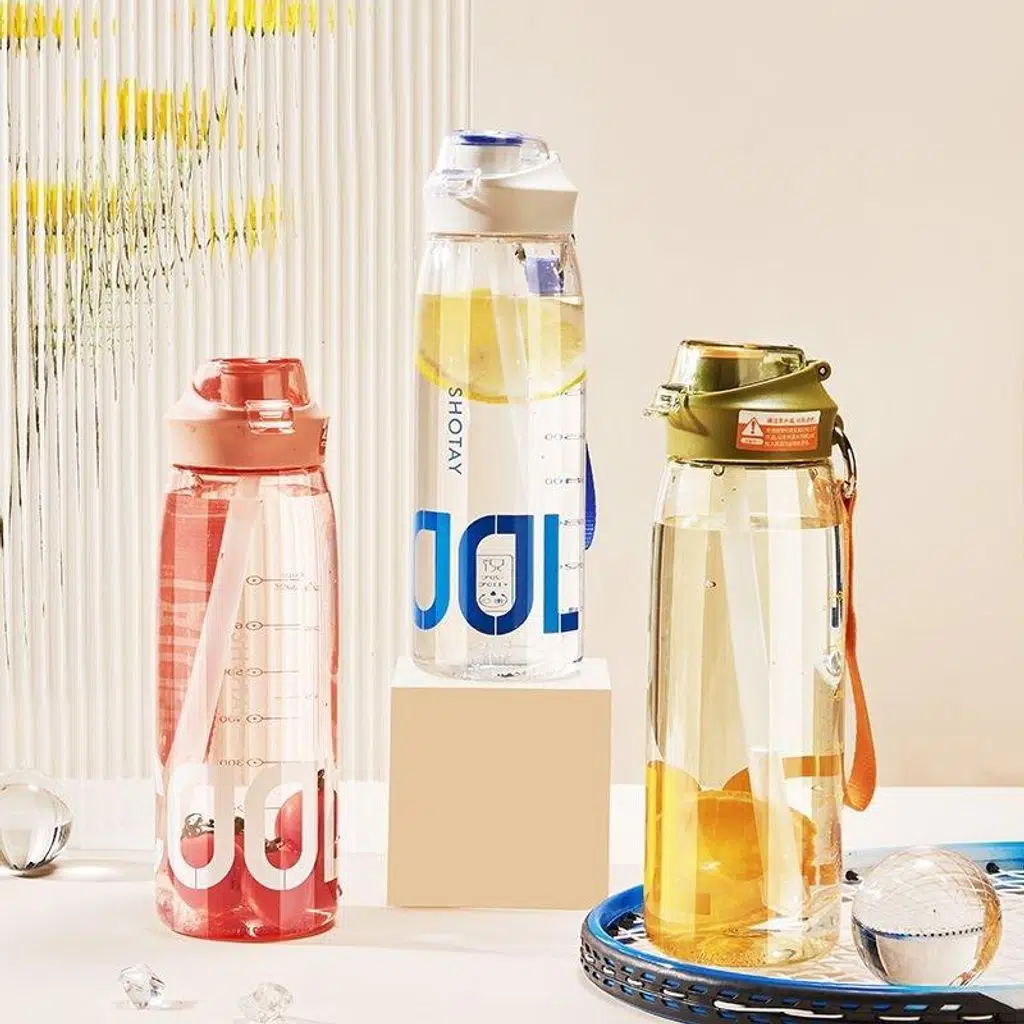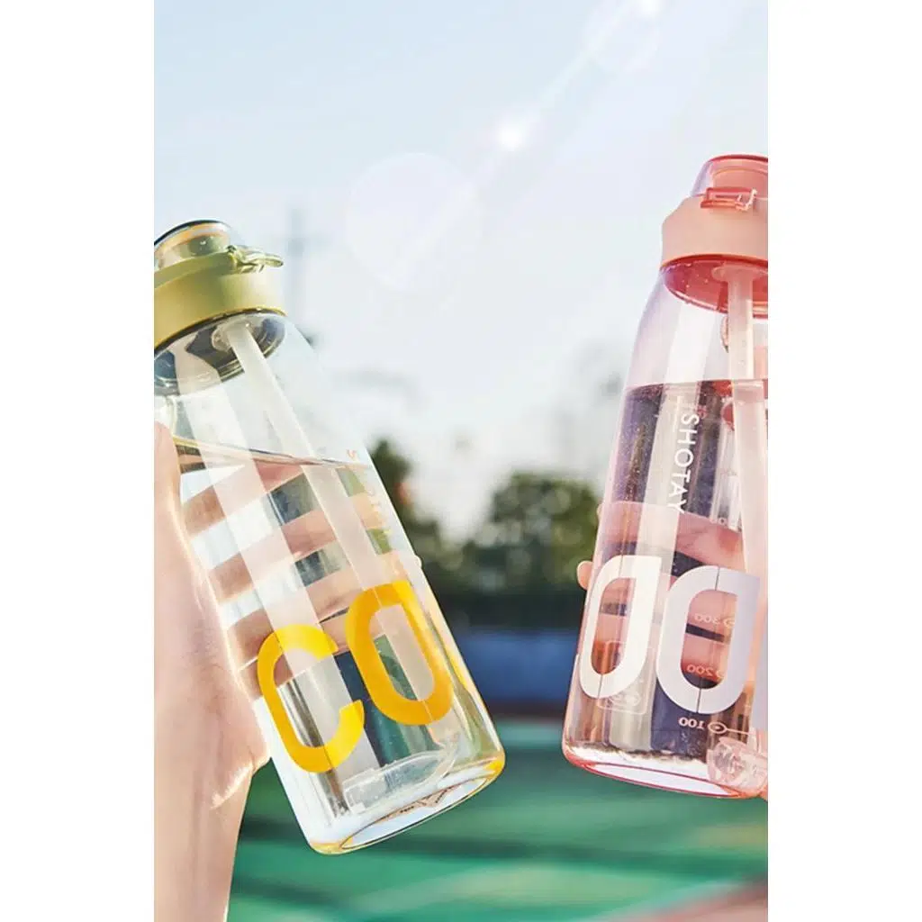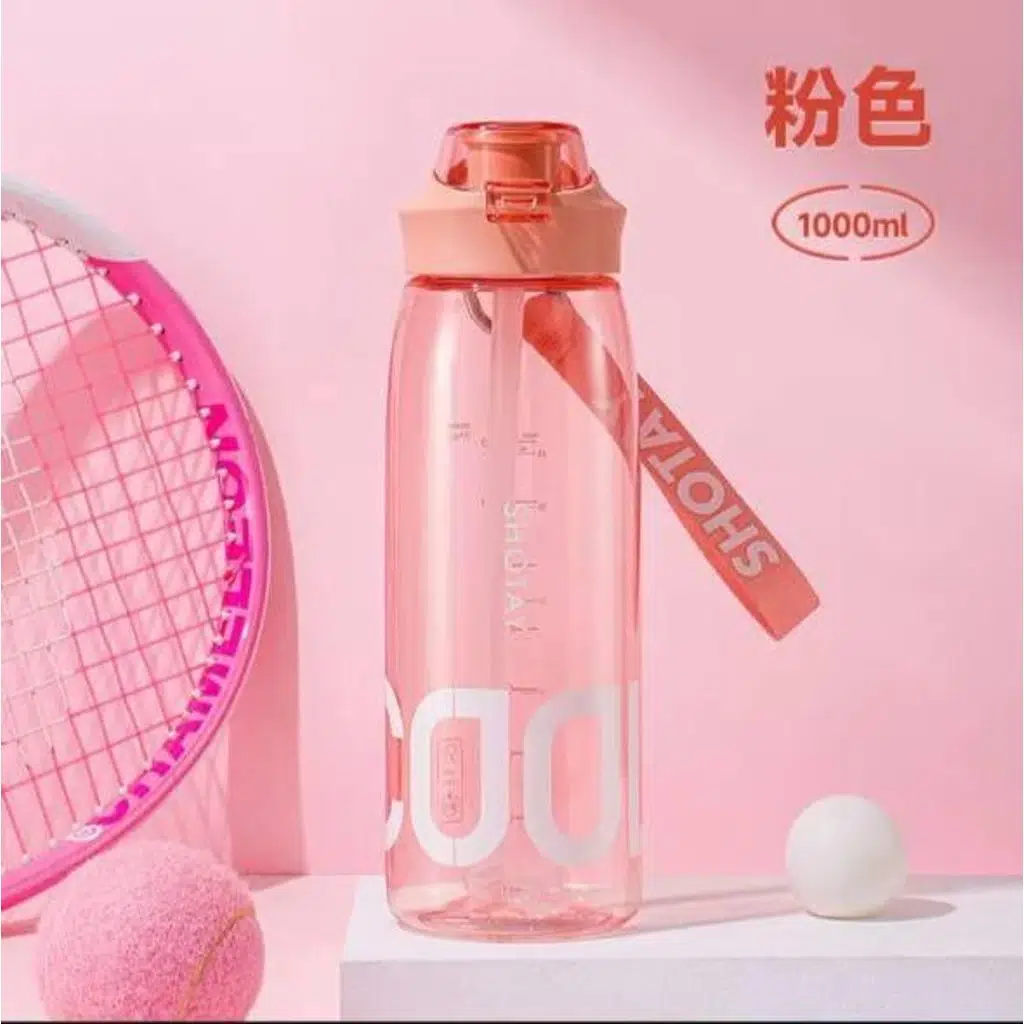 Shotay Cool Su Matarası Şeffaf Kapaklı, Sızdırmaz, Dayanıklı, Pipetli, BPA İçermeyen, Askılı Unisex Pembe 1000Ml