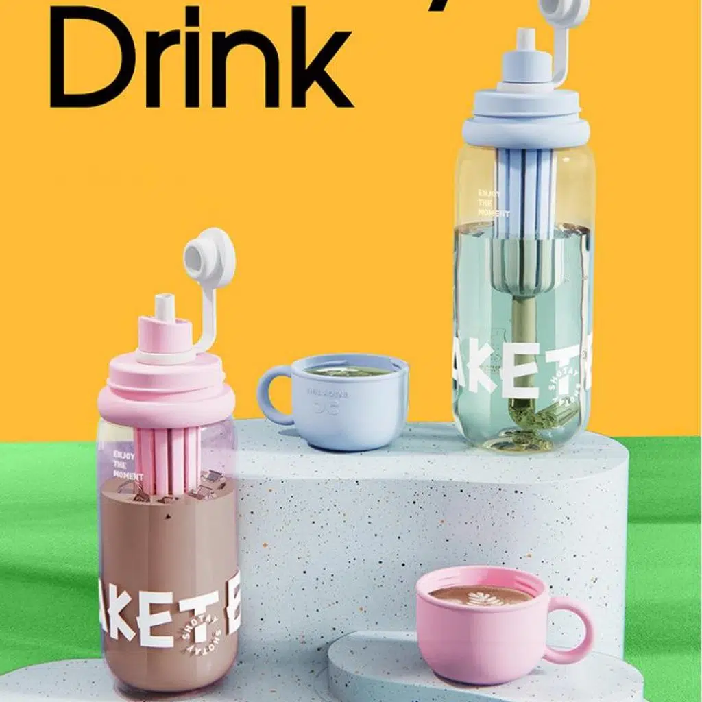 Shotay Cup Cover Su Matarası Bardak Kapaklı, Sızdırmaz, Dayanıklı, Filtreli veya Filtresiz Kullanıma Uygun Ağızlık, Pipetli, BPA İçermeyen, Tritan Unisex Yeşil 800Ml
