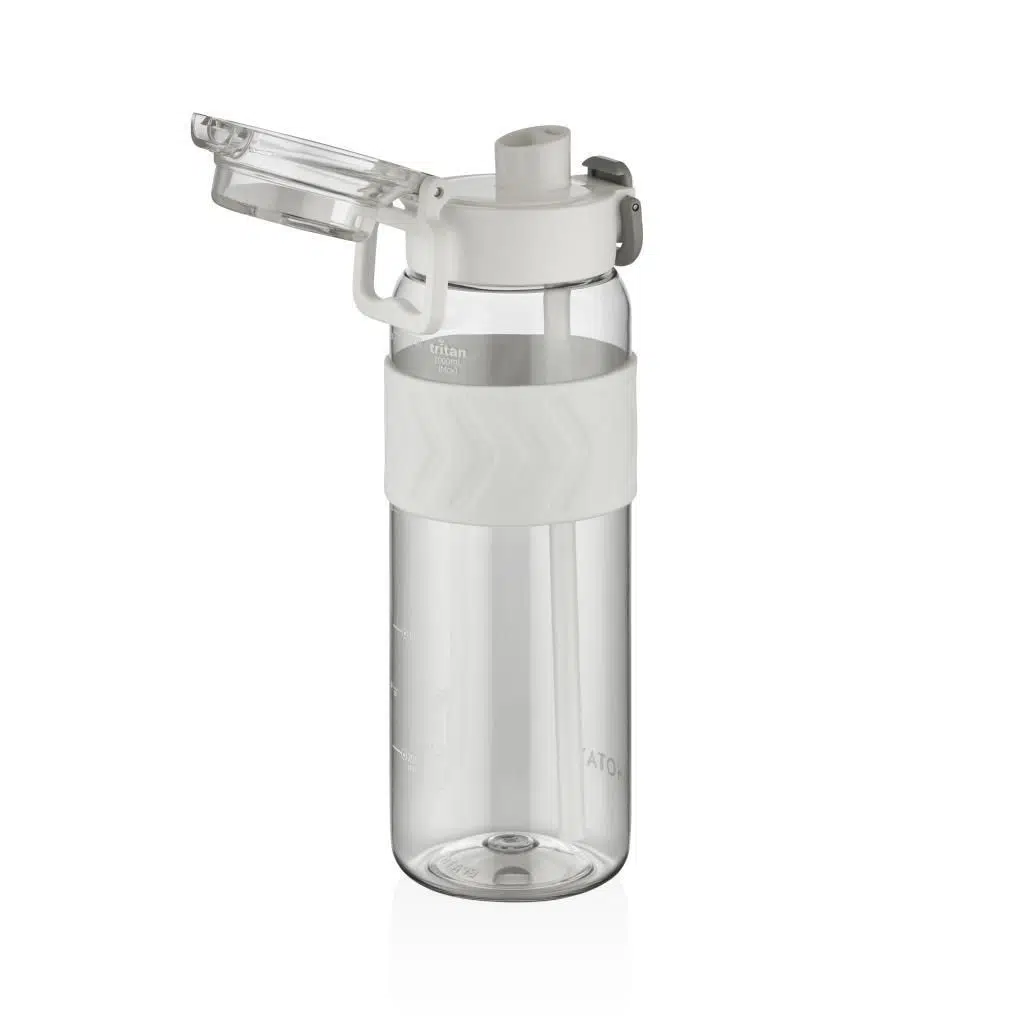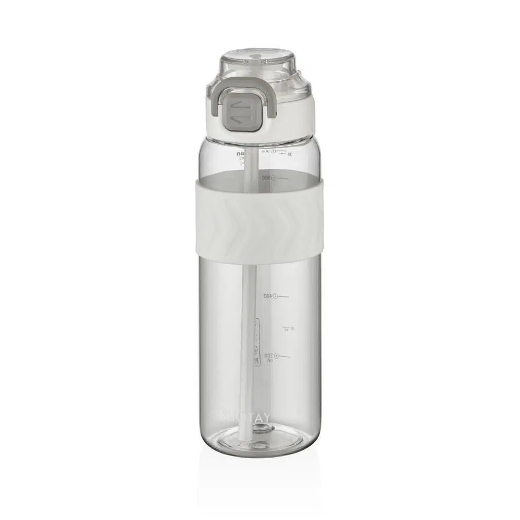 Shotay Direction Su Matarası Şeffaf Kilitli Kapaklı, Sızdırmaz, Dayanıklı, Pipetli, BPA İçermeyen, Tritan Unisex Beyaz 1000Ml