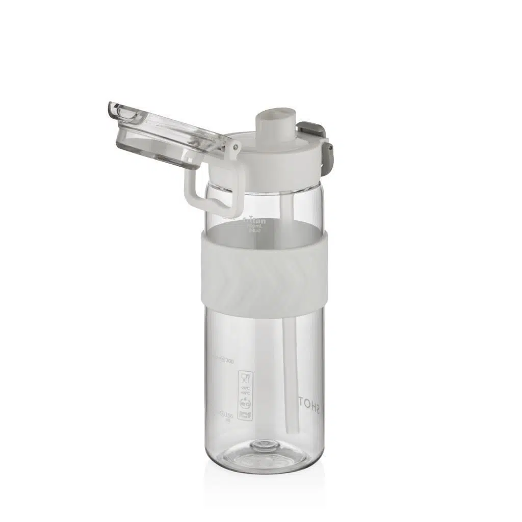 Shotay Direction Su Matarası Şeffaf Kilitli Kapaklı, Sızdırmaz, Dayanıklı, Pipetli, BPA İçermeyen, Tritan Unisex Beyaz 800Ml