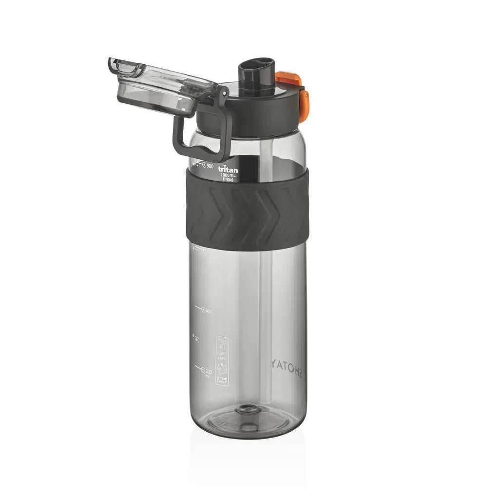 Shotay Direction Su Matarası Şeffaf Kilitli Kapaklı, Sızdırmaz, Dayanıklı, Pipetli, BPA İçermeyen, Tritan Unisex Siyah 1000Ml