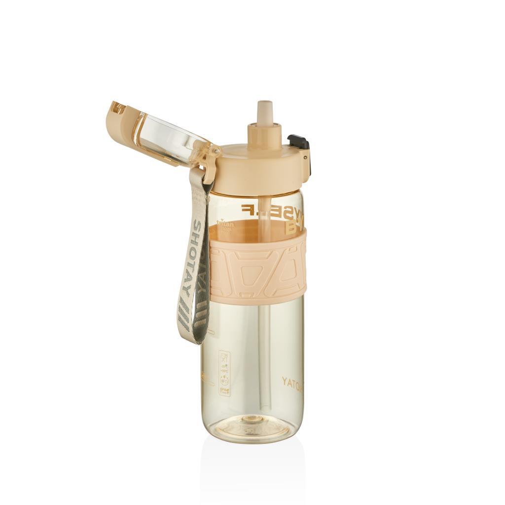 Shotay Myself Su Matarası Şeffaf Kapaklı, Sızdırmaz, Dayanıklı, Pipetli, BPA İçermeyen, Tritan Unisex Krem 750Ml