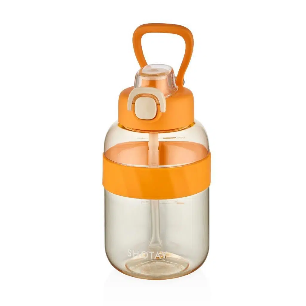 Shotay Pipetli Su Matarası Sızdırmaz, Kilitli Kapak, Dayanıklı, BPA İçermeyen, Tritani Kulplu Unisex Turuncu 1000Ml