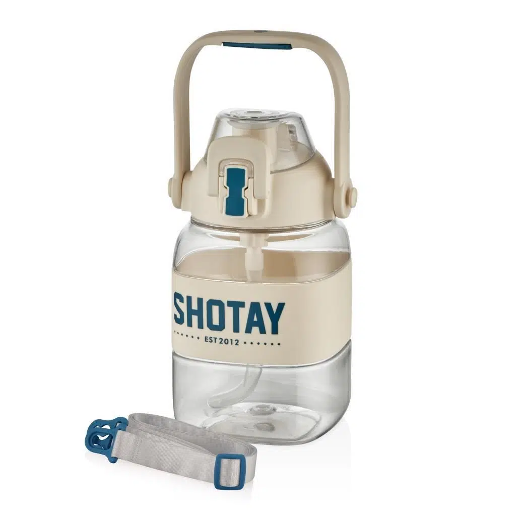 Shotay Ribbon Grip Su Matarası Şeffaf Kilitli Kapaklı, Sızdırmaz, Dayanıklı, Pipetli, BPA İçermeyen, Tritan Unisex Beyaz 1000Ml