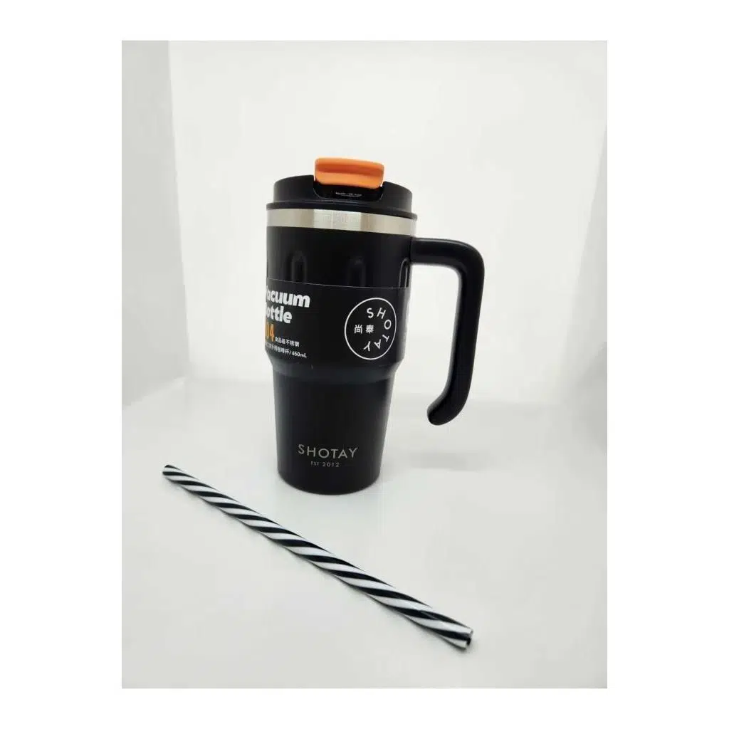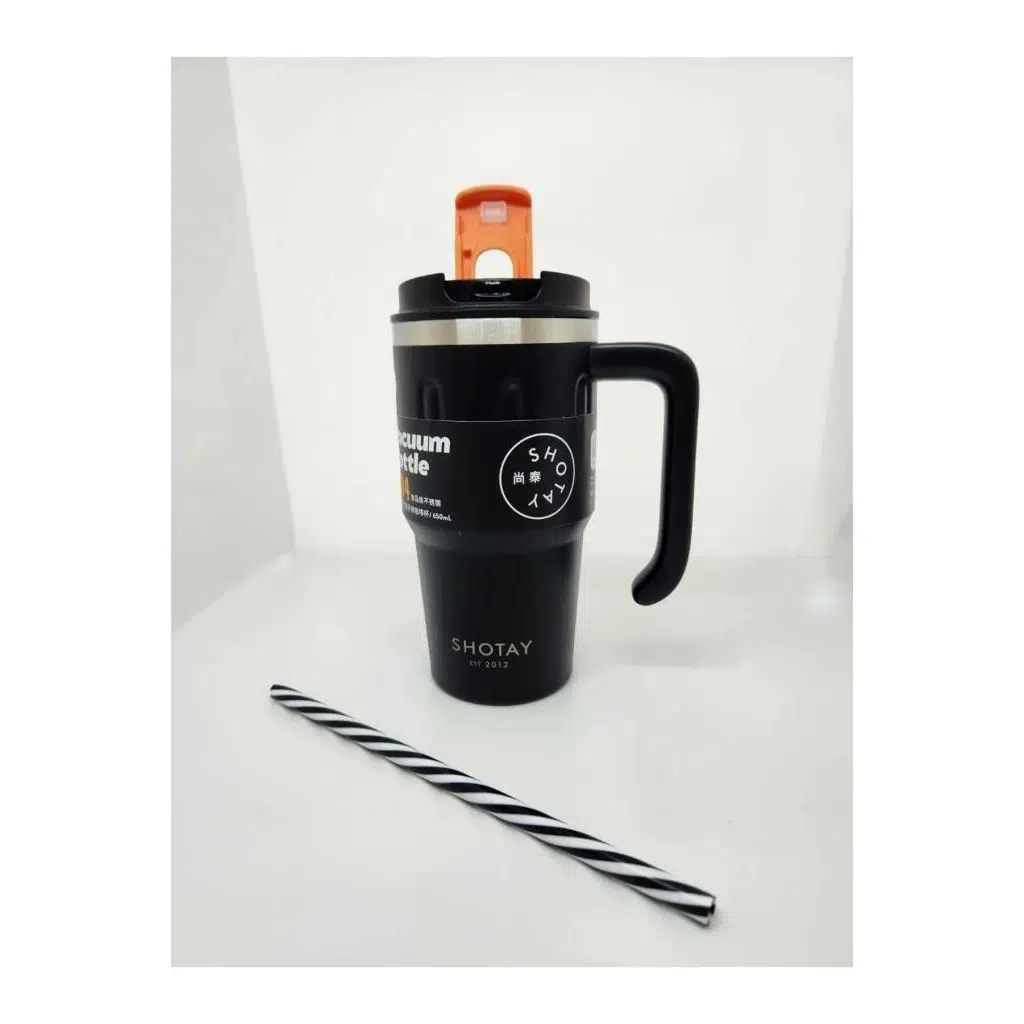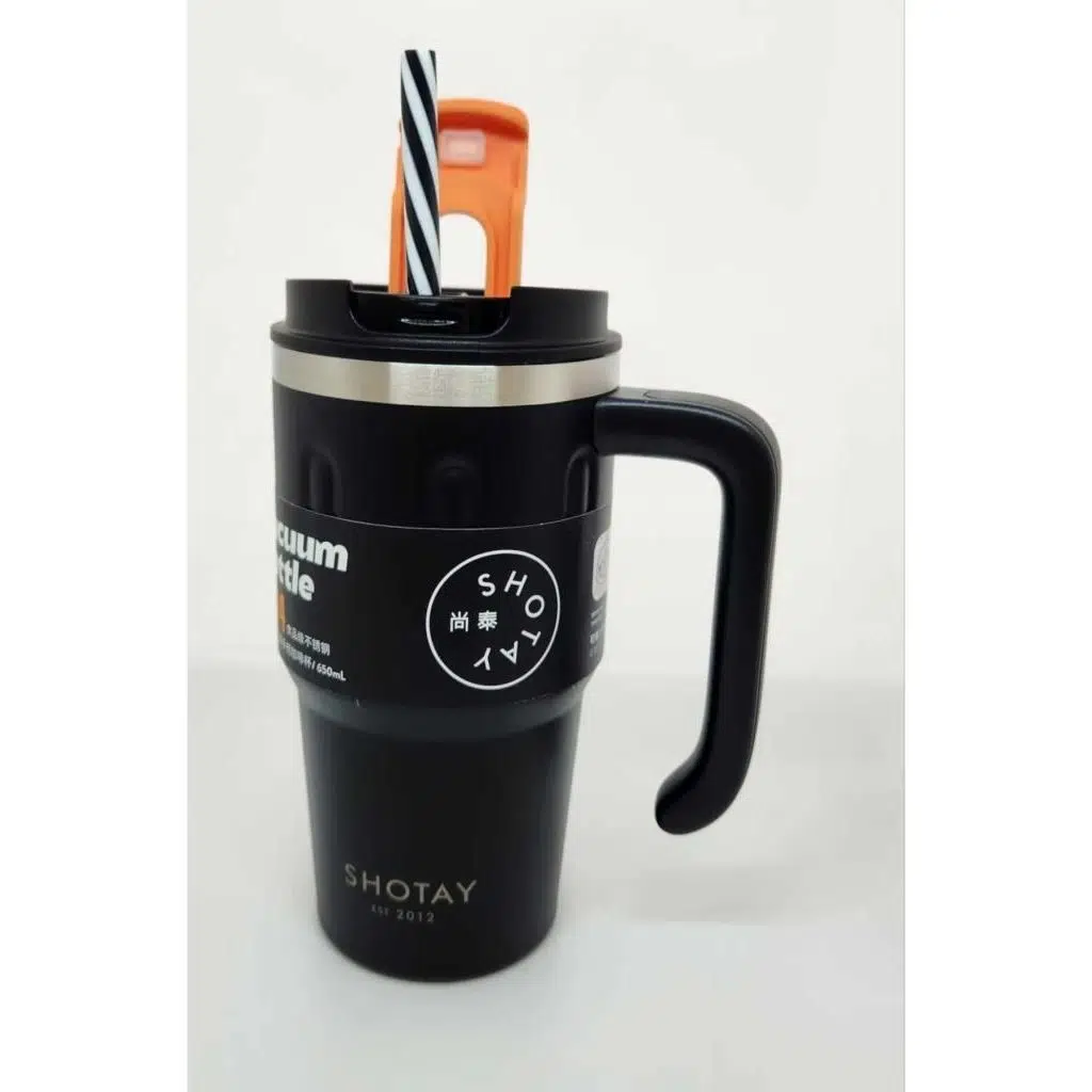 Shotay Termos Bardak Paslanmaz Çelik Outdoor Kulplu Pipetli 650Ml Siyah