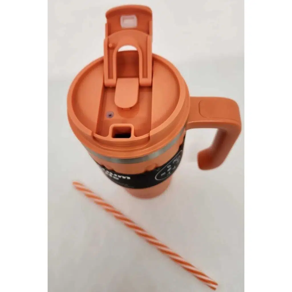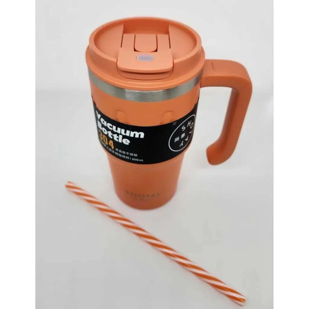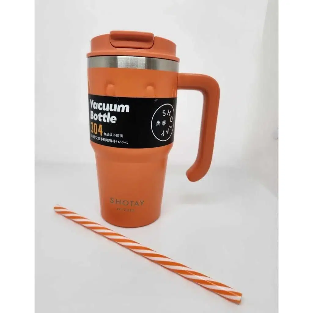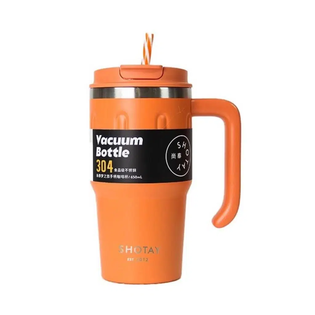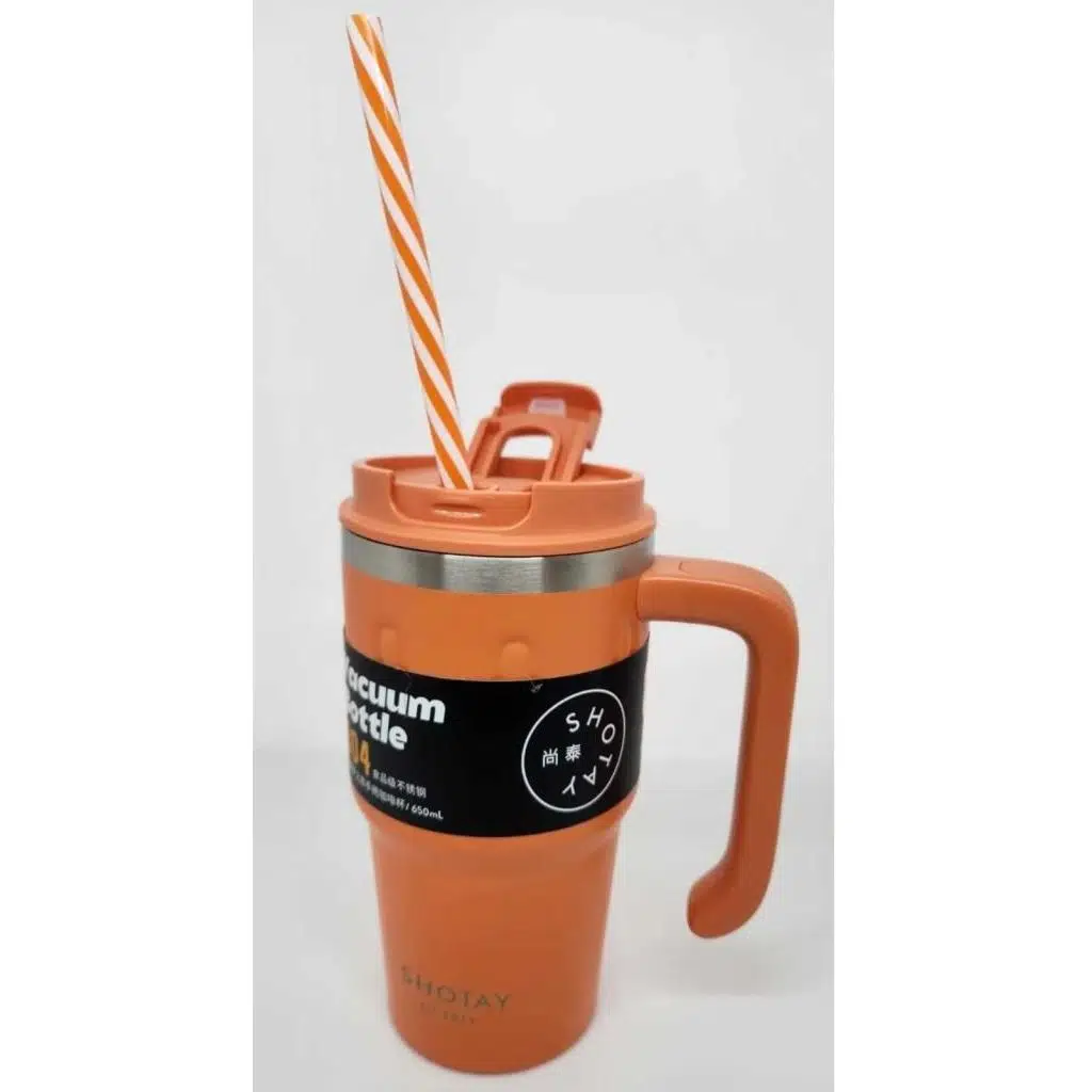 Shotay Termos Bardak Paslanmaz Çelik Outdoor Kulplu Pipetli 650Ml Turuncu