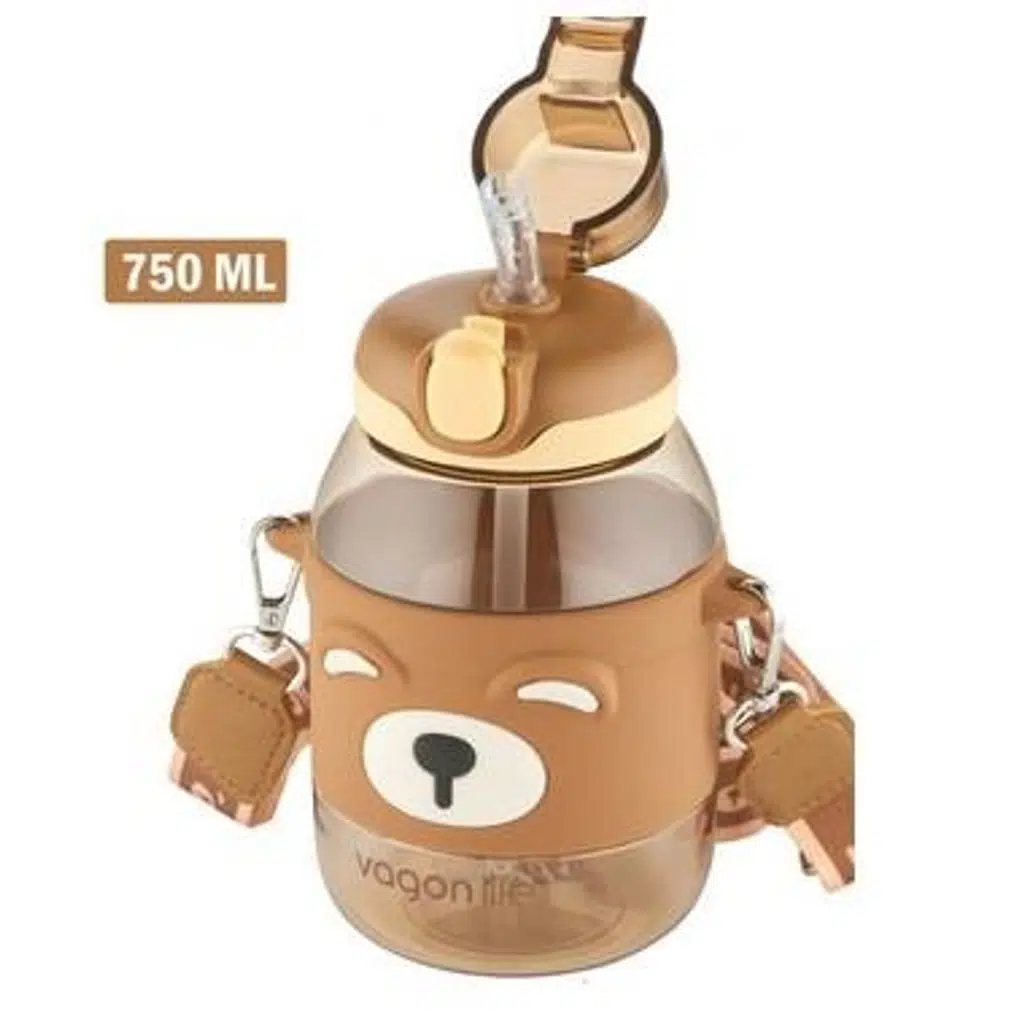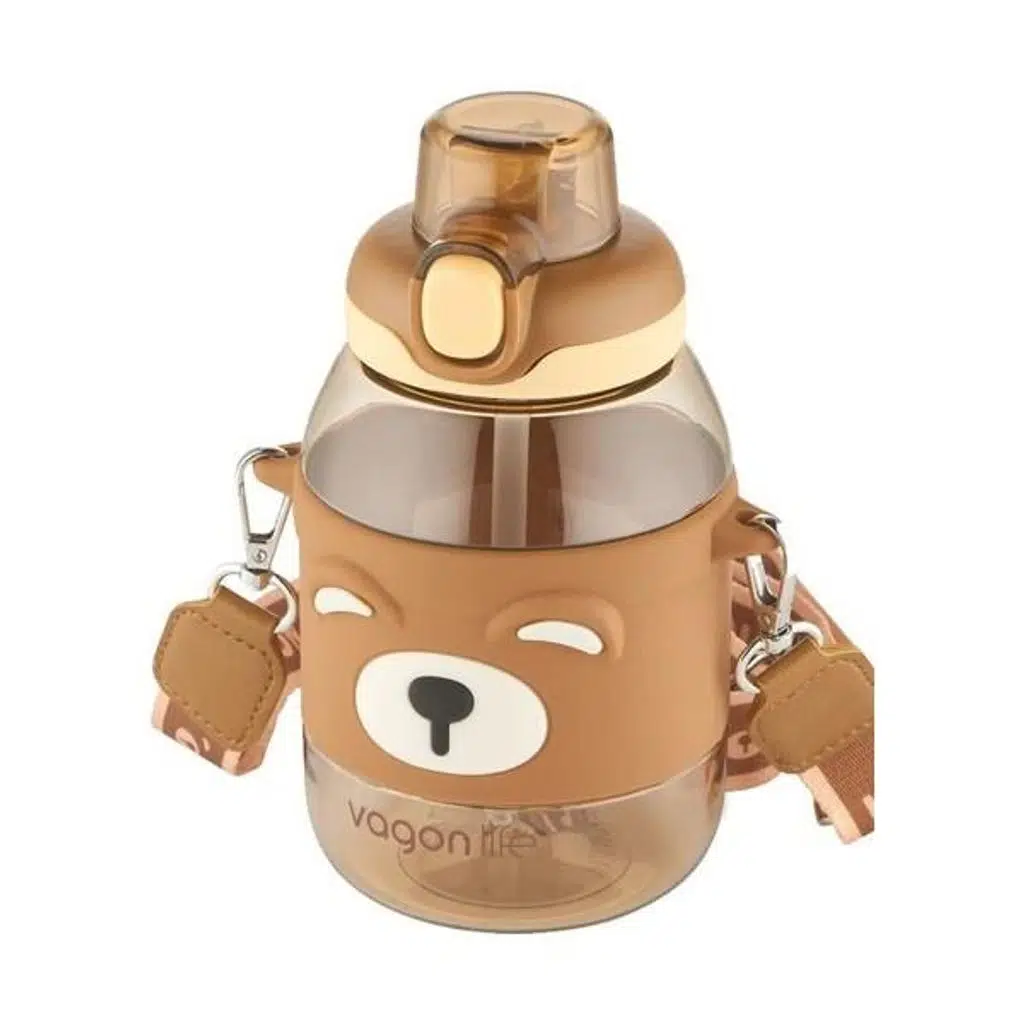 Vagonlife Pipetli Çocuk Matarası 750Ml Kahverengi Boyun Askılı